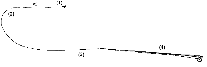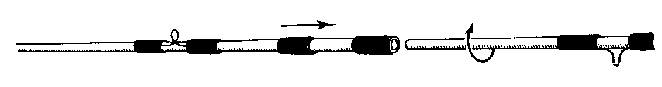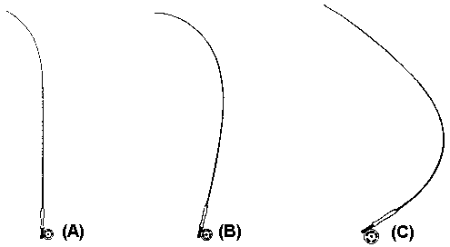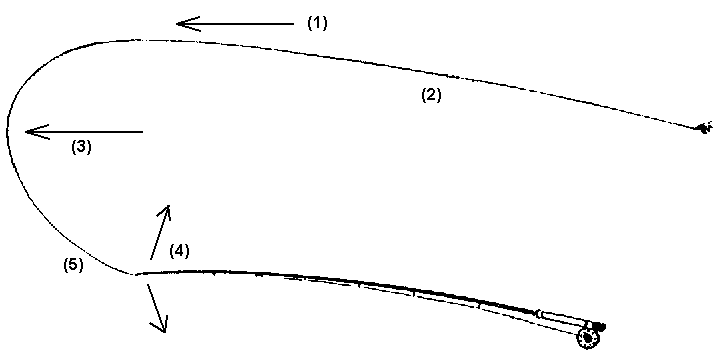 Consideremos a continuación una caña de 9` (2.74 metros) de largo en un lance final adelante; Aparecen tres movimientos para tener en cuenta:
