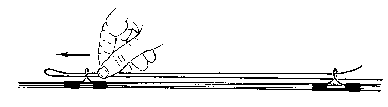 Para realizarlo se debe sujetar la línea con la mano izquierda entre el carrete y el primer pasahilos, así, una vez iniciado el movimiento hacia atrás la mano bajará acelerando progresivamente de la cabeza a la cintura y volverá a subir (sosteniendo la línea) para iniciar el movimiento adelante.