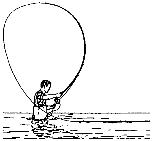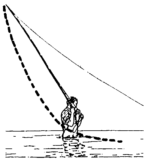 En este movimiento es cuando el principiante encuentra sus mayores dificultades; generalmente aplica la fuerza al iniciar el impulso ó usa la muñeca y forma un bucle defectuoso, sin darse cuenta que una leve corrección en la base de la caña significa metros en la punta de la misma.