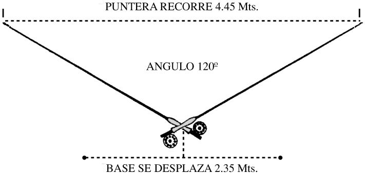 2) El mismo vértice o base de la caña puede llegar a desplazarse en línea recta unos 2.35 metros, calculando un lanzador de estatura media, con ligeras variaciones de alcance de brazos, e inclinación del cuerpo en el balanceo. Podemos llamarlo movimiento de traslación.