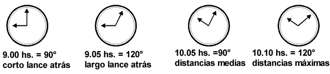 Al recorrido que hace la caña al empezar y finalizar cada balanceo se lo denomina arco de lanzamiento, éste forma un ángulo variable de 90° mínimo y de 120° máximo (ejemplo de las agujas del reloj):