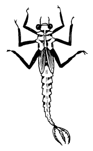 Una vez maduras, las ninfas ascienden hacia la superficie, ya sea nadando como trepando por la vegetación acuática. Expuestas al aire, rasgan su exoesqueleto y eclosiona el insecto alado. Estos exoesqueletos son muy comunes de ver, prendidos en los tallos de los juncos con la disminución del nivel del agua ya entrado el verano. Los adultos, durante los primeros días, por su torpeza en el vuelo, son muy vulnerables al ataque de los salmónidos.