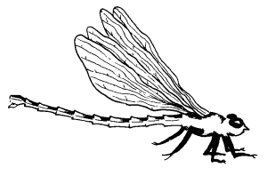 Las libélulas o Damsel Flies, normalmente miden hasta 30 mm. mientras los alguaciles o Dragon Flies poseen grandes ninfas de hasta 60 mm. o 70 mm.. Estas últimas en ambientes donde faltan crustáceos de gran tamaño como los de la cuenca del Manso, representan una parte fundamental en la dieta de los salmónidos.