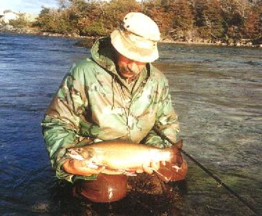 6) En ríos grandes, pescando a ciegas o pasando la mosca lejos del pez, se imponen S.T. y streamers voluminosos (lease "gatos"). Pescar truchas migratorias en cursos como el Limay es tarea de guerreros. Aquí gana el mas experimentado, el mas dotado técnicamente o el que se calza el "casco y overol". Tome las jornadas magras con mucha filosofia, agote todas variantes que se le vengan a la mente, observe atentamente a los que saben y nunca baje los brazos.
