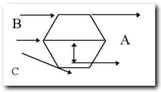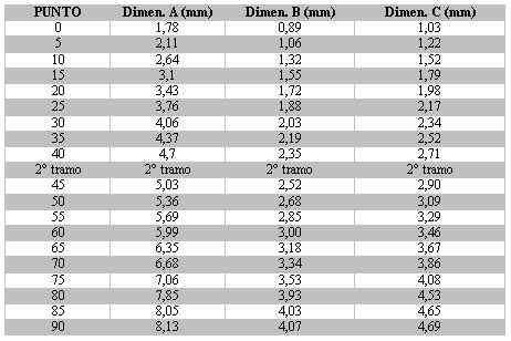 En el gráfico siguiente está representada la regulación de la matriz donde (A) es la medida del diámetro final , (B) es el lado y (C) sera la altura que daremos a las varillas que cepillaremos con nuestro cepillo de carpintero (ver tabla de regulación más arriba).
