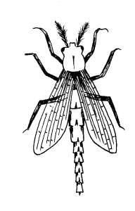 Se denominan así, al gurpo de insectos que poseen sólo un par de alas, a diferencia de los anteriores que todos, poseen dos pares. Este orden incluye a los archiconocidos mosquitos, moscas, tábanos y jejenes. Pero dentro de este orden, los únicos que tienen importancia representativa en la dieta de las truchas son la familia de los Quiromónidos, conocidos también como Midges. Se trata de pequeños mosquitos no picadores, normalmente de menos de 10 mm. de longitud y de extremada abundancia en casi cualquier ambiente acuático, sobre todo en lagos y lagunas muy gegetados. Poseen ciclo de vida completo y en el transcurso de un año, pueden existir varias generaciones, produciéndose la mayoría en los momentos más cálidos del año, debido al alza de la temperatura.